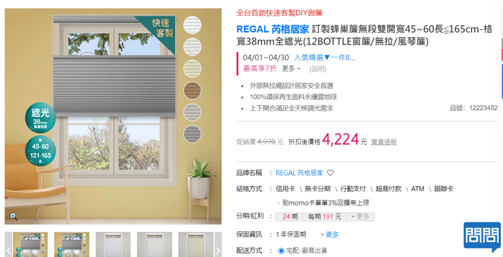對了,後來查了一下,原來芮格居家背後是慶豐富集團,是台灣的窗簾大廠,所以品質上是不太需要擔心的。