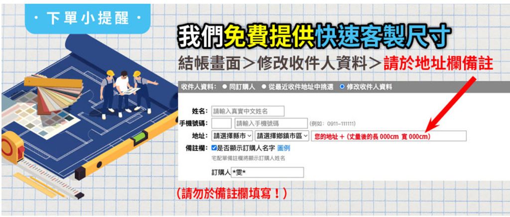 在購物網站上其實有不少蜂巢簾可選擇,但因為我想要的尺寸寬度想要訂製,所以選擇可訂製寬度長度的芮格。在 momo 上面,芮格蜂巢簾有個快速客製的品項,可以直接在 momo 搜尋芮格訂製蜂巢簾就可以找到。當你丈量完成後,選擇大於丈量尺寸的規格後,在收件人地址欄位後面填上所需要的長與寬,就可以直接結帳。