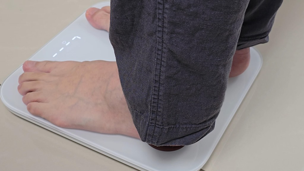 好,那就來實測一下到底可以測到那些數據。站上體脂計後,大約 20 秒鐘就可以量測完畢,螢幕上與手機 APP 上都會同步顯示量測進度。