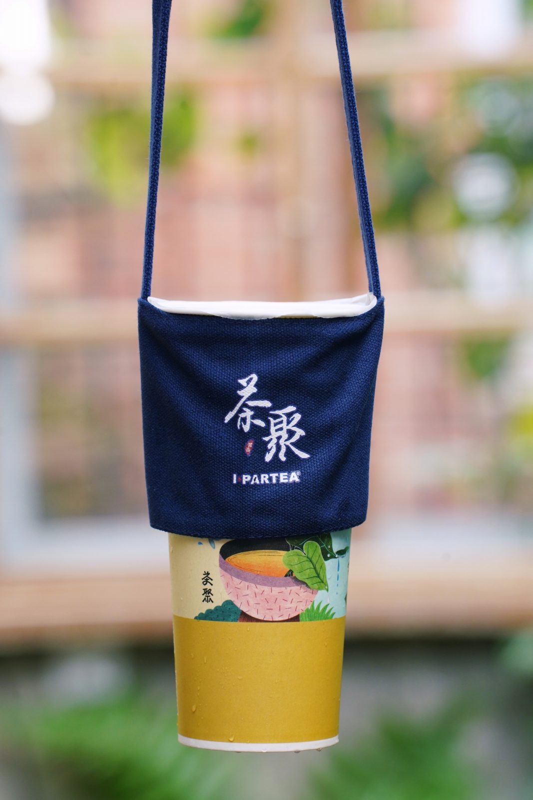 ▼購買飲品時,店家贈送了杯套,材質柔軟細緻,長度剛好,藍色不會過暗過淺,相對耐髒,還有一點文青感。