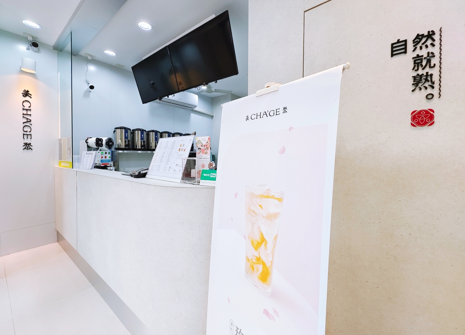 ▼店內則是保持清爽明淨。牆上的標語「自然就熟」乍看一語雙關,事實上是在表明,茶聚對原茶基底本質的重視,認為有好品質的茶底,就能調製出各式好喝的茶品,無論是個人獨享、與朋友相聚時來一杯,都不會對身體造成負擔。
