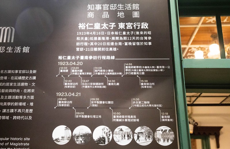 原臺南縣知事官邸,建於1900年(明治33年),台南人暱稱為「時鐘樓」,就館內的解說人員表示,這棟建築除作為地方知事的官邸外,另一個重要的用途是作為日本皇族外出時的「御泊所」,在台灣歷史上該建築是南台灣唯一設計作為供皇族居住的行館,1923年當時的裕仁太子(後為昭和天皇)來台參訪於曾下塌於此,當年裕仁太子在台住宿地點現僅存臺北賓館及臺南縣知事官邸兩處,其他都已拆除。
