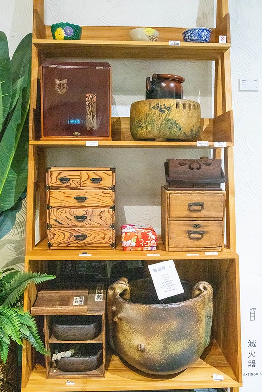 一樓還兼具日式雜貨舖的風格,除了日據時代留下來的文物外,也有許多日式器皿、雜物,休息之餘也有逛街購物的樂趣。