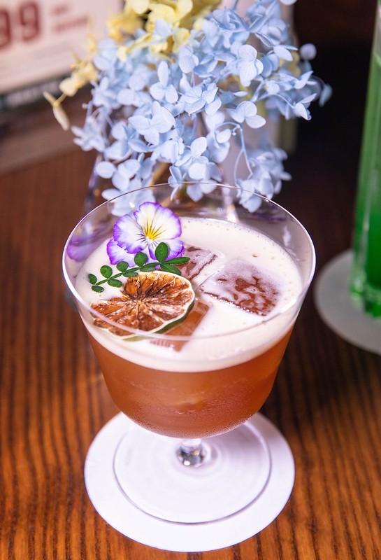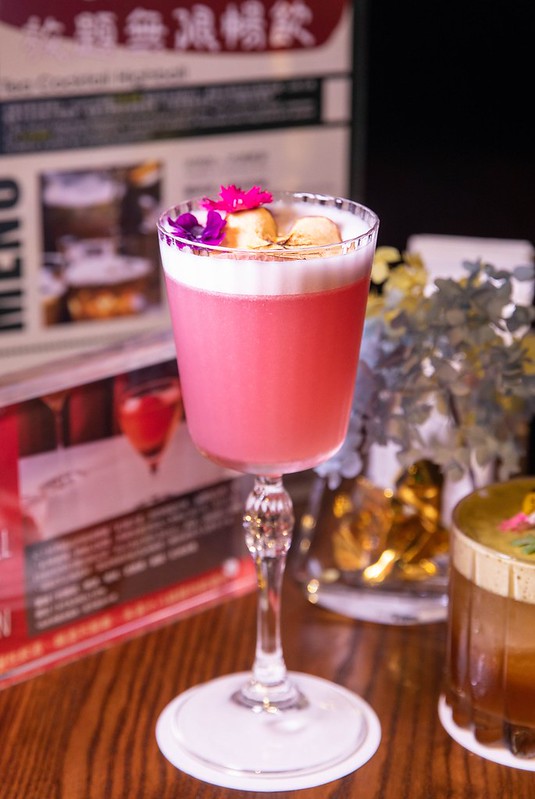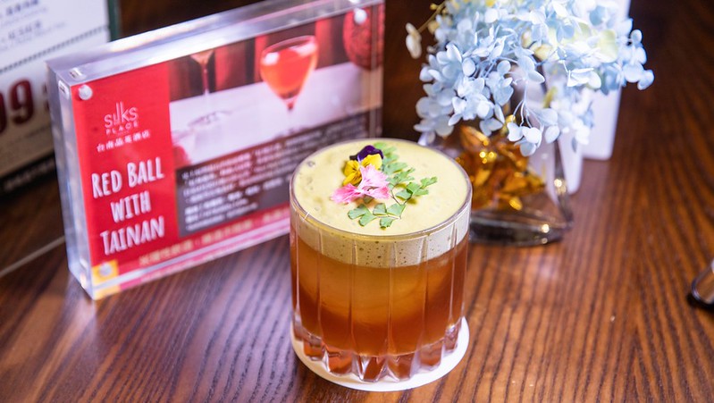 眾人七嘴八舌點了一堆,連拍照都不及,但每杯都很漂亮,果然有台南晶南的底子就是有不一樣,味道端也大抵好喝。其中以琴酒、蜜桃香甜酒、四紅果茶、蔓越梅汁、小熊軟糖調成的櫻桃小丸子據說非常受女性朋友喜歡;我個人則喜歡用深色萊姆酒、梅酒、炭焙烏龍、紅玉紅茶、手作焦糖、抹茶、紅豆冰調成的1923(裕仁太子來台的年份),味道層次豐富帶點大人風味的酒、茶後韻,很是好喝!