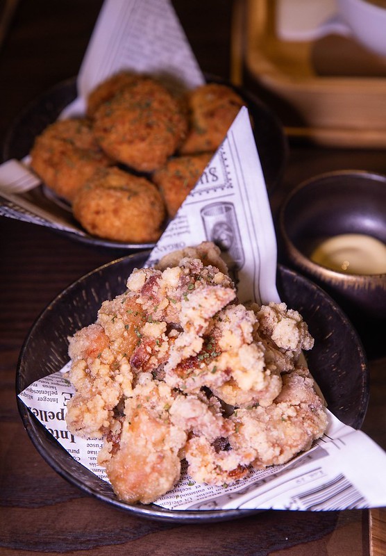 有好酒自然也有佐酒的茶點和炸物,其中的日式炸蝦球得到所有人的一致好評,日式炸雞、起司可樂餅也不錯。