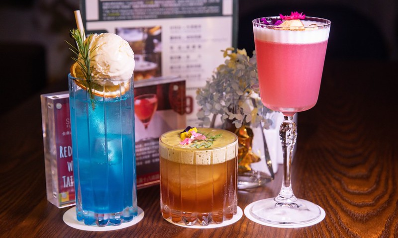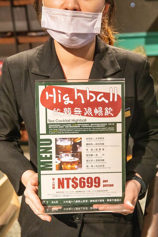 T-Bar 茶薈知事官邸的調酒,承襲了台南晶英「水晶廊」的調酒特色,結合了各式酒類、果汁,還揉合了台灣各地的好茶,光是各式調酒就有20多種之多,茶飲和無精神的飲料選擇性也頗多,調酒大致上都320元左右,飲料則100多元起。另外還有以六款不同酒、茶調成的調酒專案,3小時無限續杯喝到爽699,差不多喝上三杯就夠本xd。