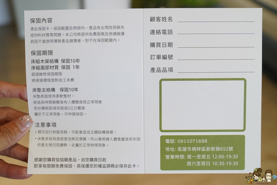 加上本身是床墊專賣店,床墊、床片、床底都有保固十年
