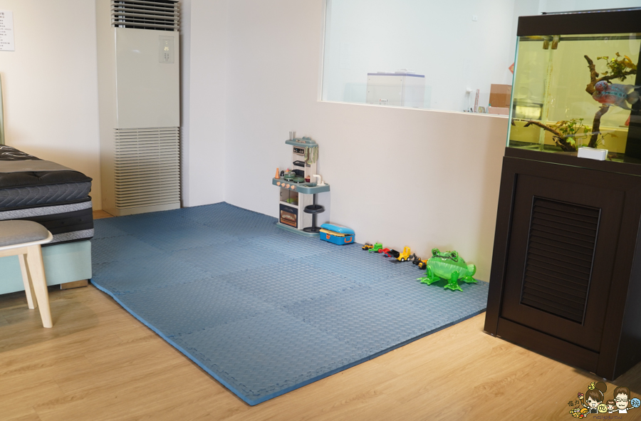 設置兒童遊戲區,帶孩子也不用擔心無聊,加上有電動玻璃門,不擔心孩子跑出去