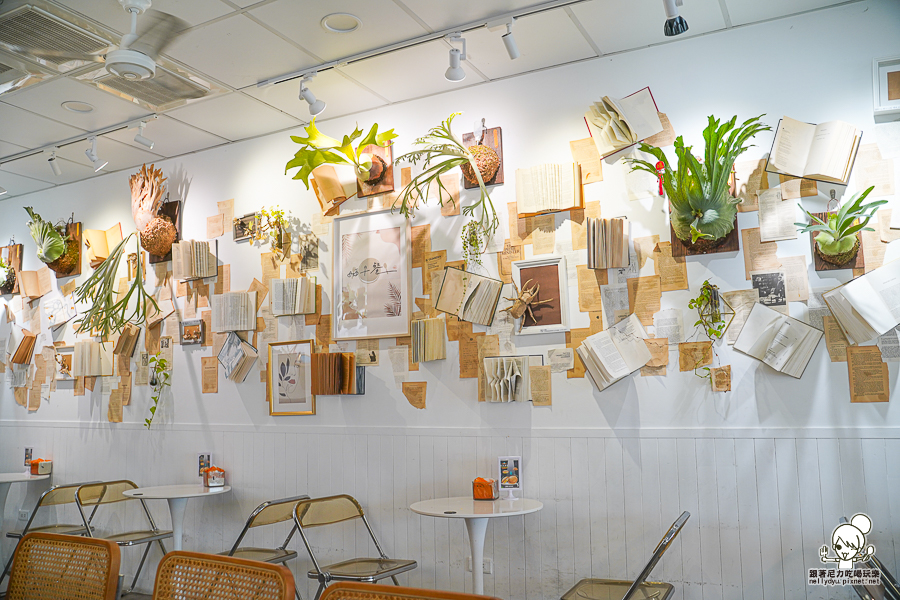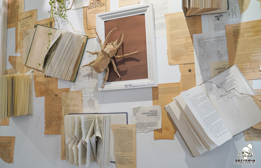 牆面的紙本、書籍都是摺紙藝術,都是與創作者一起合力設計配置