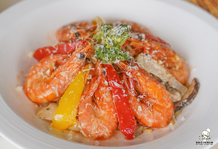 義大利麵帶有Q度,引出鮮蝦滋味
