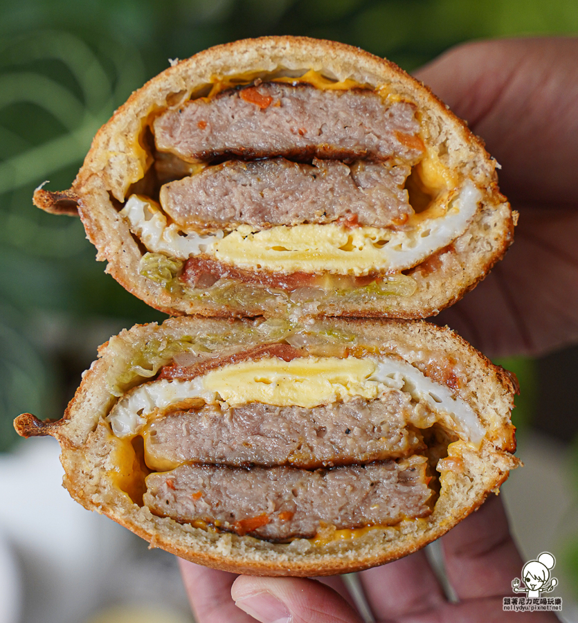 搭配起司、蛋、厚切豬肉,每一口咬下都好滿足