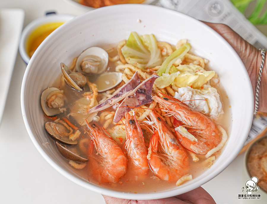 這款是原味鍋燒麵,有鮮蝦、蛤蠣、小卷