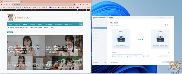 最棒的一點就是在複製的過程中,還是可以使用電腦,非常的方便,像小米在複製時,一樣繼續上網,繼續看影片,也都沒有問題。