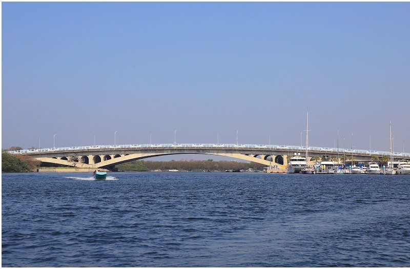 ▲橫跨安平港灣的漁光大橋!好美麗唷!搭船遊安平港灣愜意輕鬆!