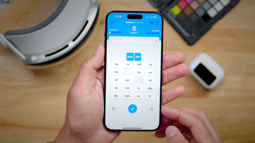 去年 Apple 在 Apple News+ 中,加入每日填字遊戲與填字迷你遊戲後,受到不少好評,所以在這次更新後,預計可能會加入 Quartiles 文字遊戲。這遊戲進行時,會秀出 20 組單字的部分組成,你可以依照順序將這些部分組成一個單字,這是相當有意思的遊戲。