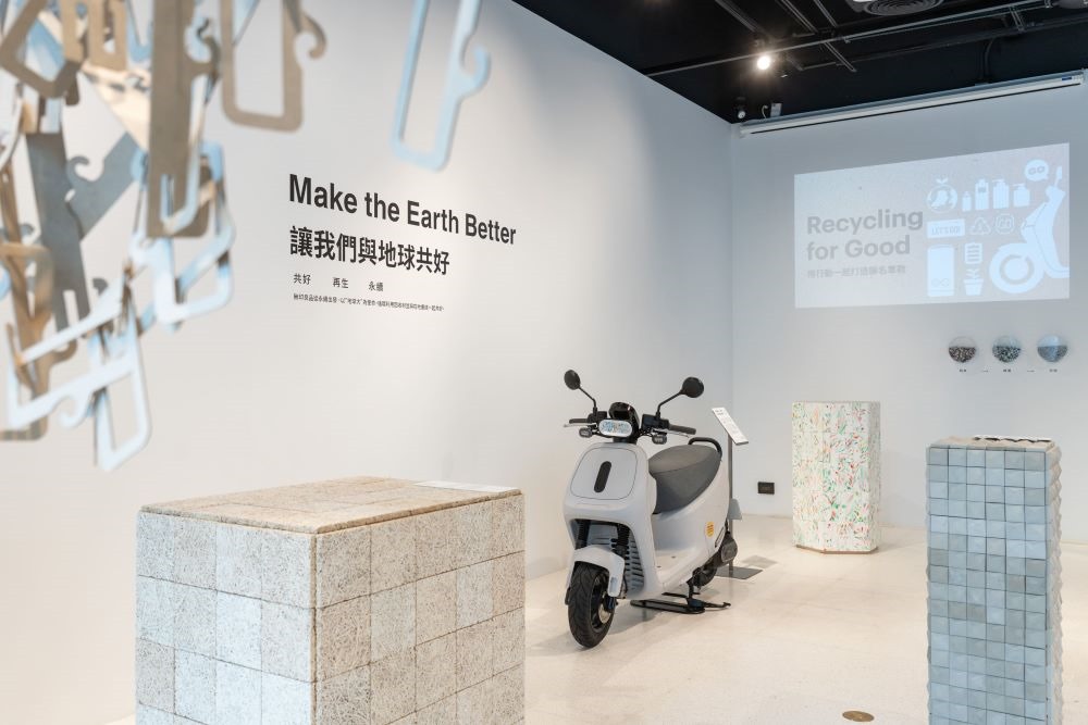 為響應 MUJI無印良品 20 週年,Gogoro 也攜手 MUJI無印良品共同舉辦「Make the Earth Better_永續.再生.共好」展覽,展出一系列致力於實現永續生活與友善環境的商品與理念,以及 MUJI無印良品積極投入在地生產的行動。其中包括展示由 Gogoro 打造的「PCR PP 概念車款」,期待建立友善循環、綠色製造的新典範。