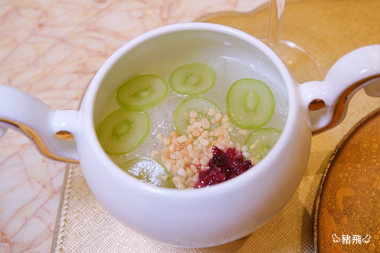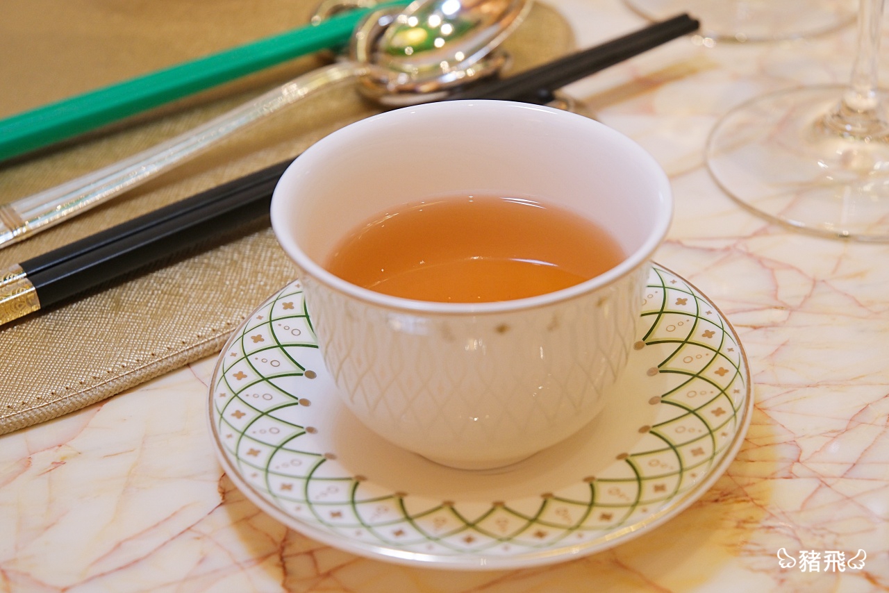 入座後首先上桌的是讓我們暖暖胃的玫瑰花瓣茶,金黃色的茶湯有著淡淡花香,喝起來風味高雅清爽回甘。