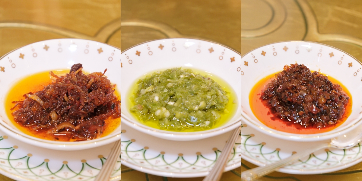 三種佐醬由左而右分別是XO醬、青花椒醬、辣醬,用來搭配餐點各有特色,豬飛比較推薦試試看青花椒醬,香氣奔放又帶有辣感。