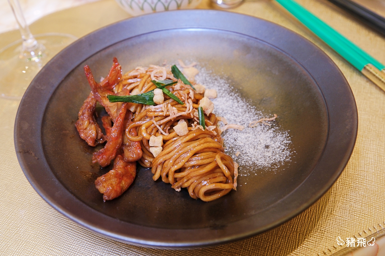 選用上海白麵搭配經典的開洋(蝦米)和香濃的蔥油拌製而成。麵條筋道彈牙,蔥油香氣撲鼻,配以海蝦蝦乾及以蝦乾研磨而成的粉末更增添了層次感。每一口都充滿了濃郁的蔥香和蝦的鮮美。