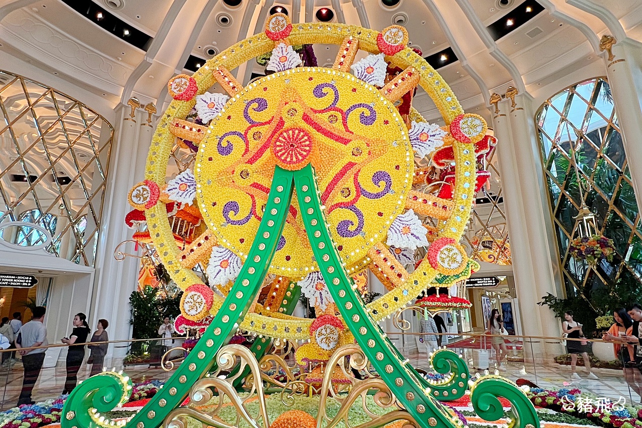 ▲花卉藝術裝置,動物摩天輪、鳳凰出殼、漂浮色氣球