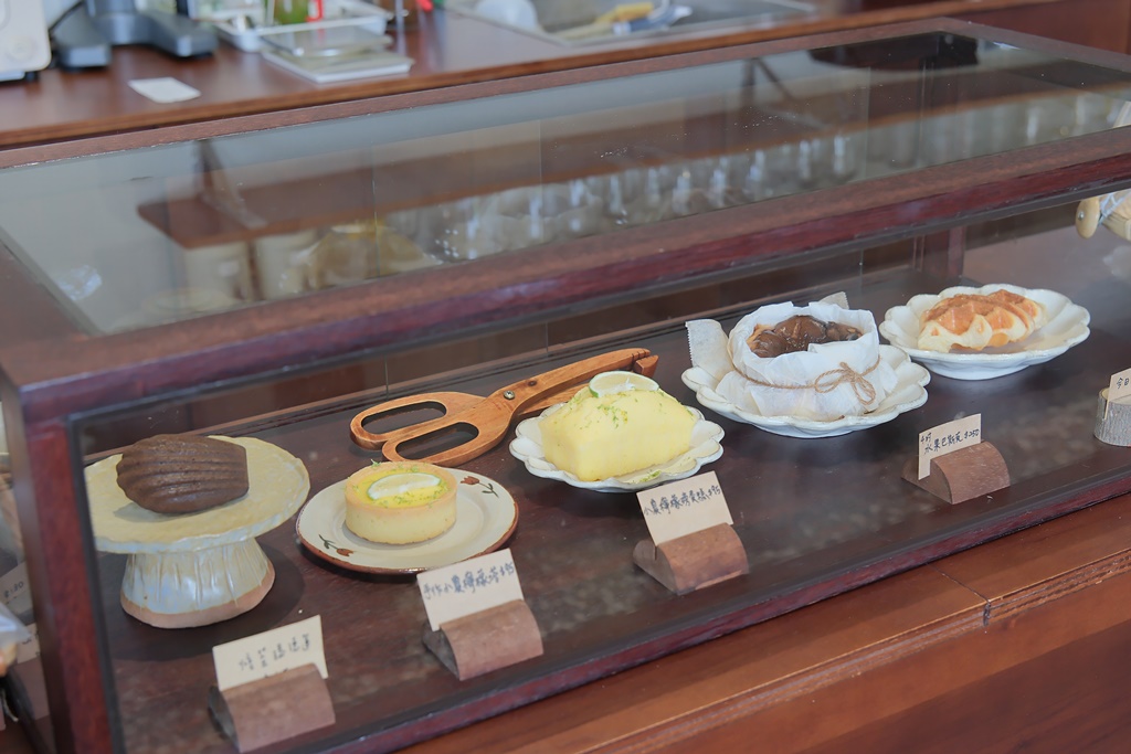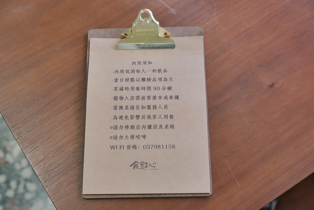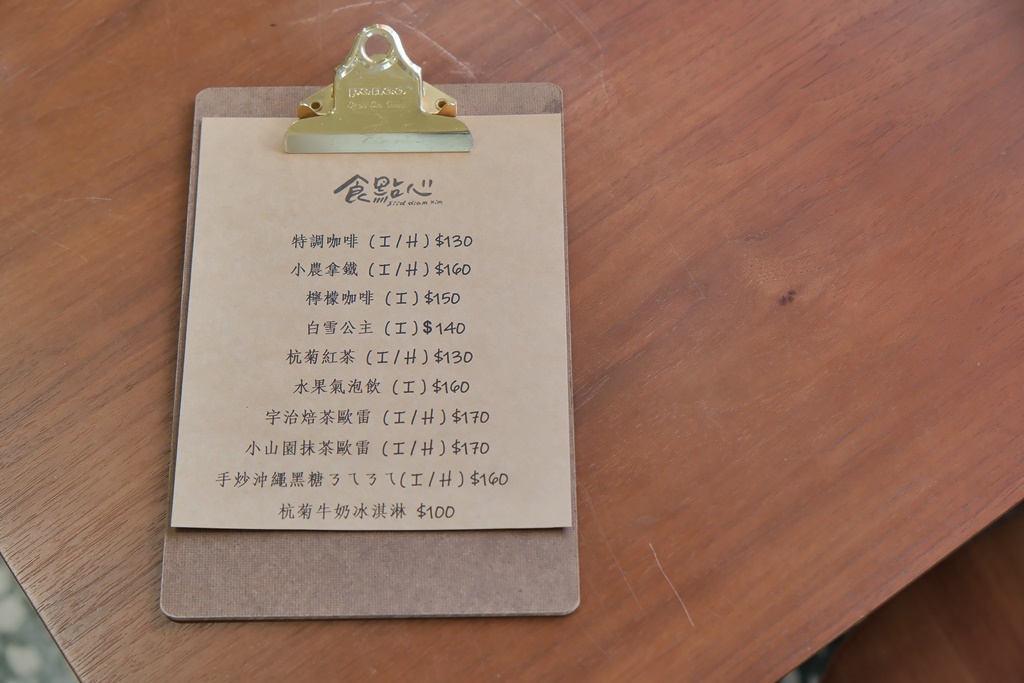 食點心創立於2021年,起初是一間僅供外帶的甜點工作室,甜點皆為一人作業,漸漸在苗栗銅鑼闖出自己的一片天,在今年三月份完成新的里程碑,全新店面距離原本的工作室不遠,位於大腳鴨滷味隔壁的白色建築!