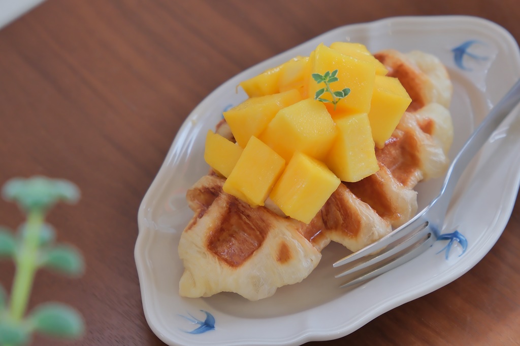 他們家的甜點是陸陸續續出的,很幸運我們來的時間剛好遇到可朗芙出爐!口感酥酥脆脆,搭配鮮奶油和新鮮芒果,整體不甜不膩,表現很優異,好吃到我們吃完還加點,一共點了三份~