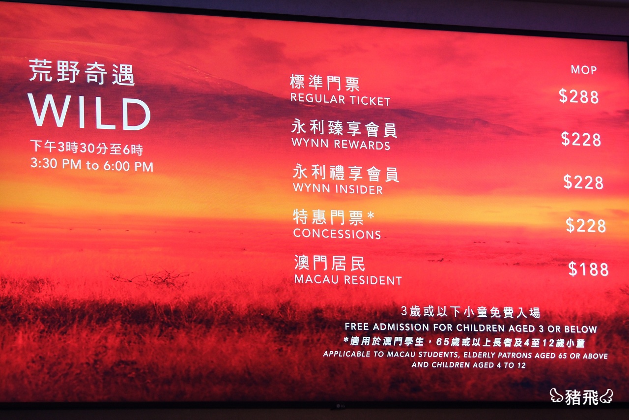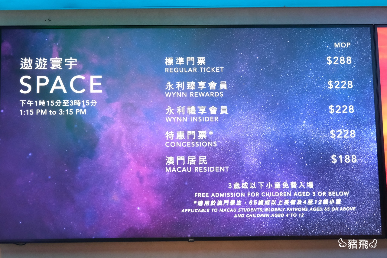 - 標準門票(所有年齡):澳門幣 228 元(3 歲或以下小童免費入場)