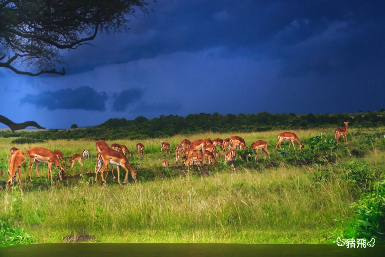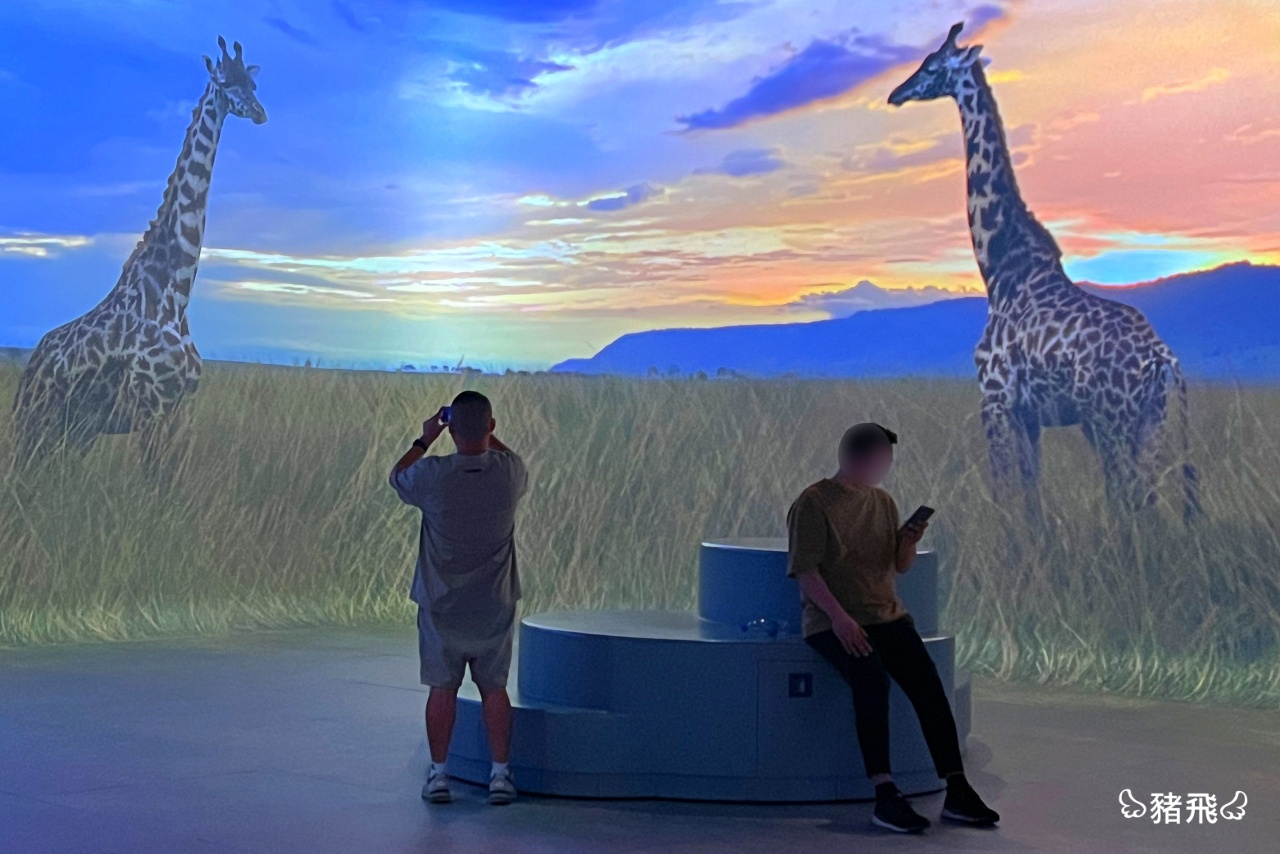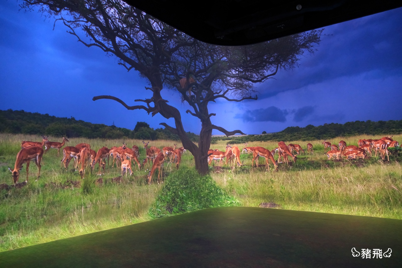 《荒野奇遇》時長 45 分鐘,展示多達 47 種非洲大陸的原生動物,帶領觀眾「穿越」至非洲,身 臨其境體驗非洲荒野大草原的一天。這裡的展覽融合了聲音、光影和動態效果,像是真的就在非洲大草原上近距離欣賞野生動物們的生活,非常驚人。
