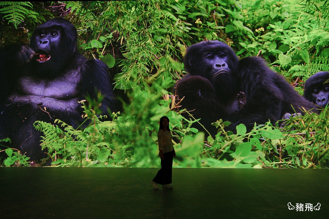 在這個空間裡,可以看著長頸鹿在草原上優雅漫步,大猩猩在草叢裡打鬧,還有跟著花豹等待狩獵的刺激。
