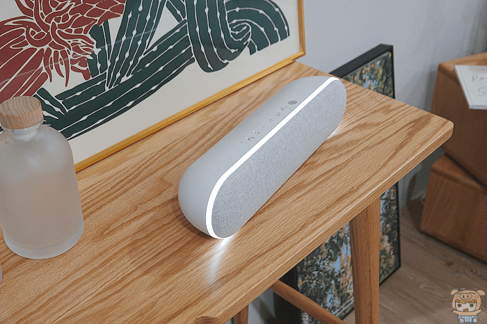 拆下後的LG StanbyME 小蜜友藍牙喇叭 XT7S也是可以單獨當作藍牙喇叭來使用的哦,非常的方便,隨便找到地方放置就能播放音樂啦。而且它充電4個小時,最長可以使用16個小時,所以即便帶出門使用,也能夠用上一整天。
