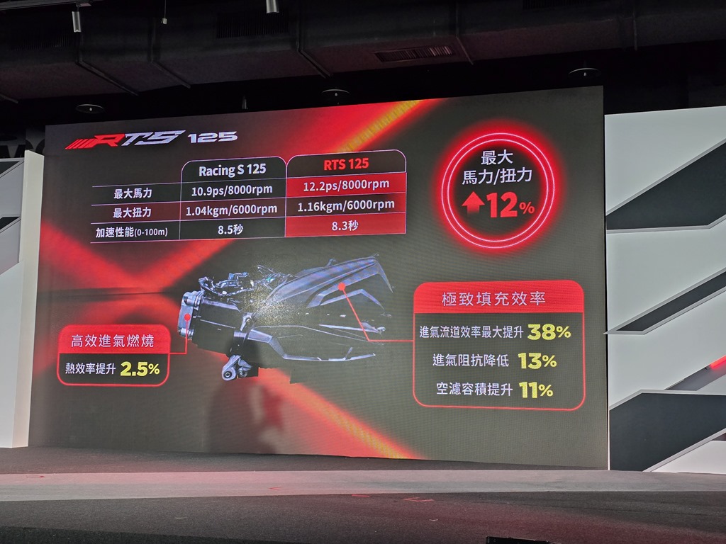 另外還推出 RTS 125 車款,馬力達 12.2ps/8000rpm、扭力達 1.16kgm/6000rpm,0~100m 僅需 8.3 秒。