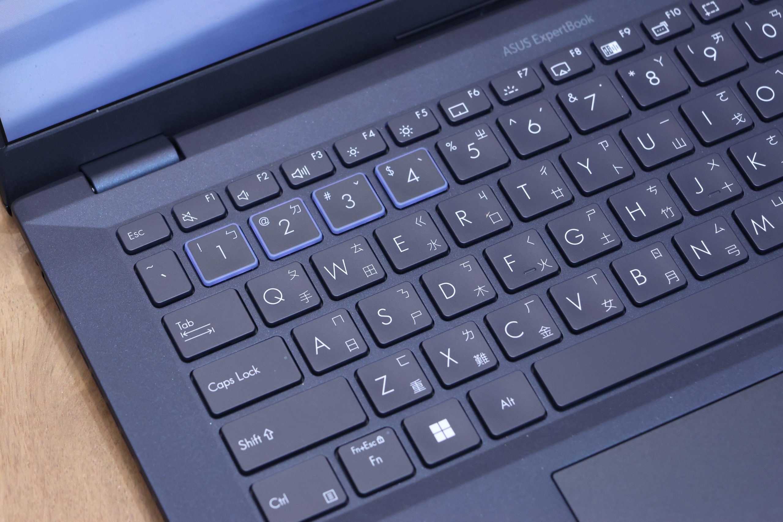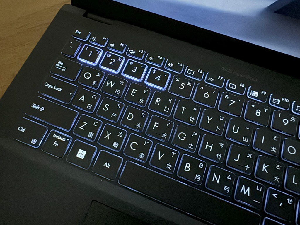鍵盤左上方的數字 1、2、3、4 外框採用半透明設計,可以透出鍵盤背光。可以透過 ASUS ExpertWidget 設定,搭配 Fn 鍵自定義快捷功能鍵,例如:啟動藍牙、WiFi、開啟指定資料夾、指定應用程式…等,讓工作更有效率。