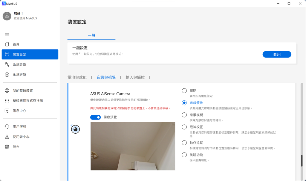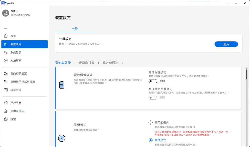 華碩在 ExpertBook B5 中同樣搭載了方便的 MyASUS 應用程式,可以一站式的管理筆電中的各項設定,而且介面還設計的很簡單易懂。