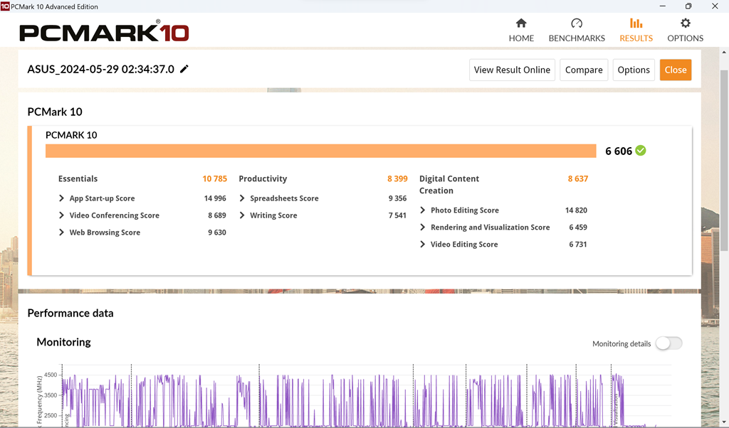 PCMark 10 測試得到 6,606 分的成績,還不錯。