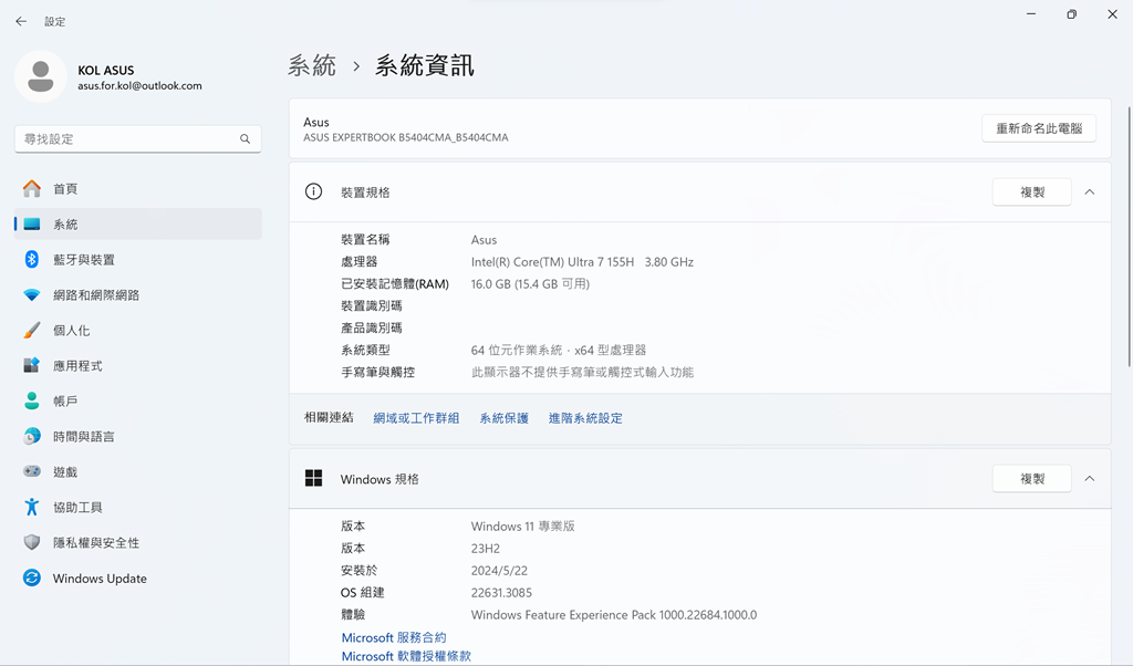 身為華碩首款 AI 商用筆電,ASUS ExpertBook B5 (B5404CMA) 理所當然搭載 Intel 最新的 Core Ultra 處理器,我們測試的版本核心規格搭載 Intel Core Ultra 7 155H 3.8GHz處理器、16GB DDR5-5600 記憶體、儲存空間為 512GB SSD,並搭配 Intel Graphics。
