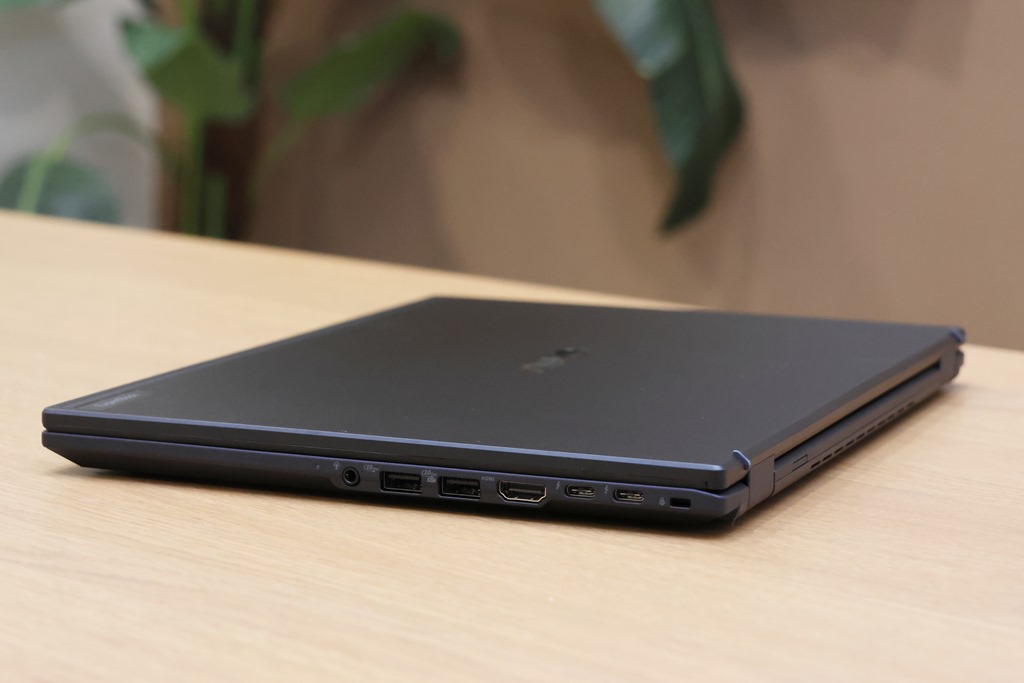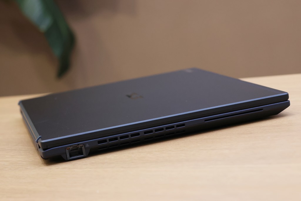 機身側邊的 I/O 埠配置非常齊全,機身左側有筆電少有的 RJ45 乙太網路孔、讀卡機,右側則有 3.5mm 耳麥孔、兩個 USB 3.2 Gen 2 連接埠、HDMI 2.1、Thunderbolt 4 Type-C 連接埠和安全鎖槽。