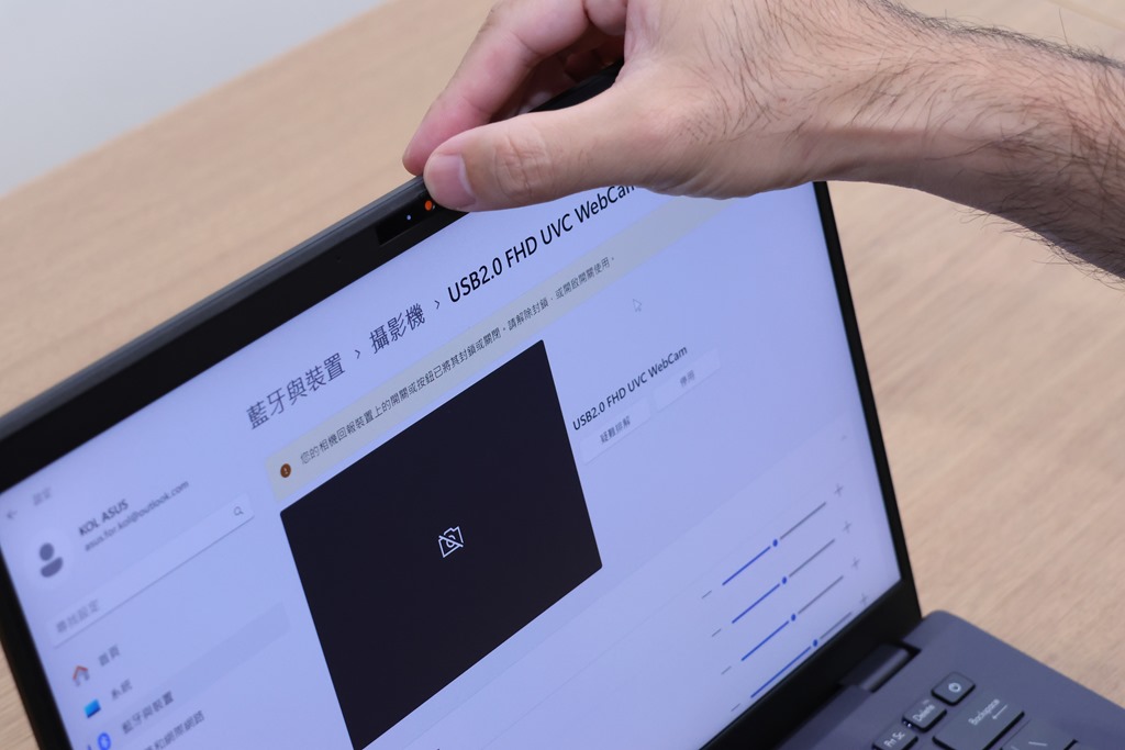 螢幕上方的網路攝影機設有實體的防窺閘,不用自己手動貼貼紙,在不需要使用到攝影機的時候就可以關上,隱私保護更直接安全。