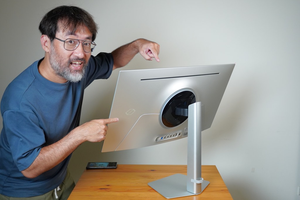 底座非常薄,但有足夠的重量可以穩固重心。在立架上的集線器,也讓線材收納更為方便整齊。顯示器的外觀設計非常吸引人,薄邊框和時尚的背板設計讓整體外觀更具現代感。