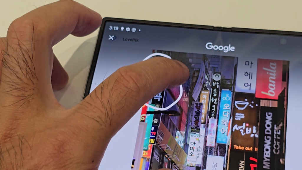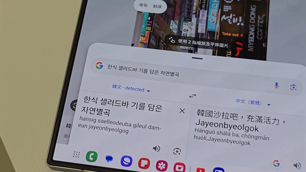 而原本就有的搜尋圈功能,現在不僅能搜尋圖片、翻譯文字,還能直接圈選 QR Code 或解答數學題。由於 Fold6 擁有更大的螢幕面積,使用者可以在不同螢幕區塊同時查看原始頁面與結果,提升操作便利性。