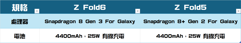 效能方面,Z Fold6 與 Z Flip6 都採用了 Snapdragon 8 Gen 3 For Galaxy 處理器。Z Fold6 的電池容量為 4400mAh,與上一代相同;Z Flip6 的電池容量則提升至 4000mAh。充電效能仍為 25W,這部分雖無進展,但有助於保護電池壽命。