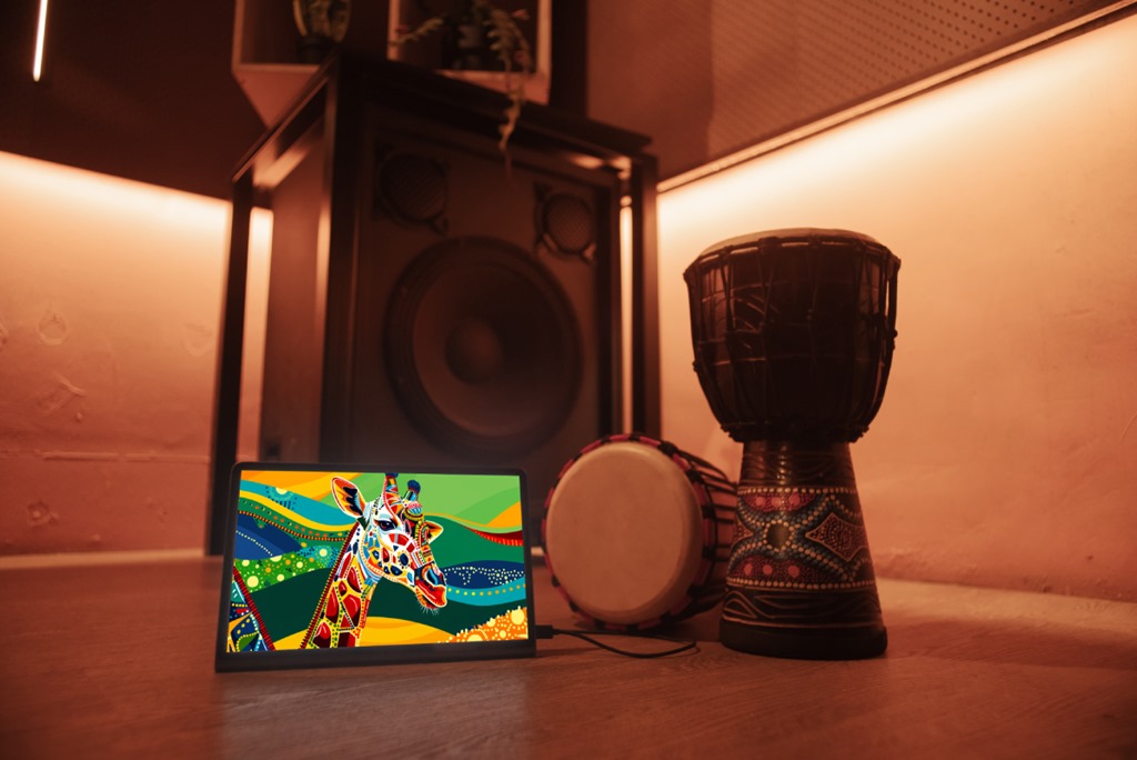 【新聞照片3】11.5吋的Tab Plus具備多種功能,可連接手機一鍵化身藍牙喇叭,播放無損音質的音樂,提升使用便利性。