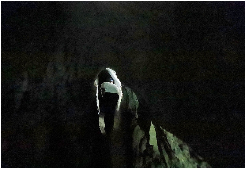 ▲古圳道隧道中間較低,放低身姿慢慢行走即可,真的有洞穴探險的刺激感。