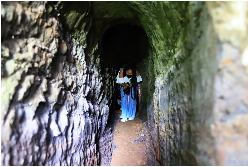 ▲真的是僅容一人通過的隧道,記得可把手機燈光打開,或是帶著頭燈或手電筒,古圳道的隧道大概50幾公尺,走起來真的很刺激。