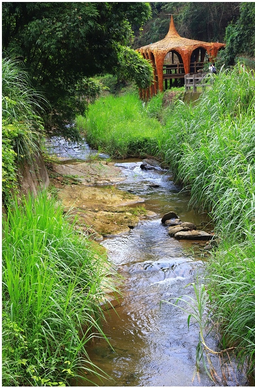▲出來後可見到藝術家創作的涼亭,涓涓細流溪水,在此乘涼甚是愜意!