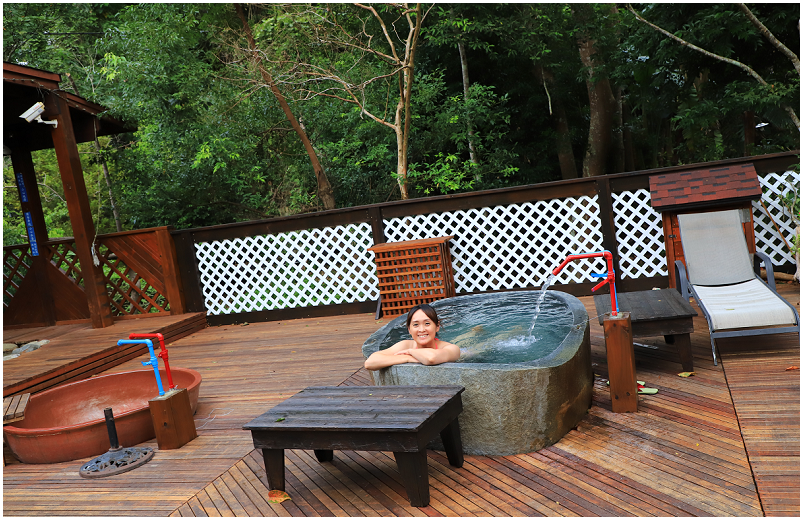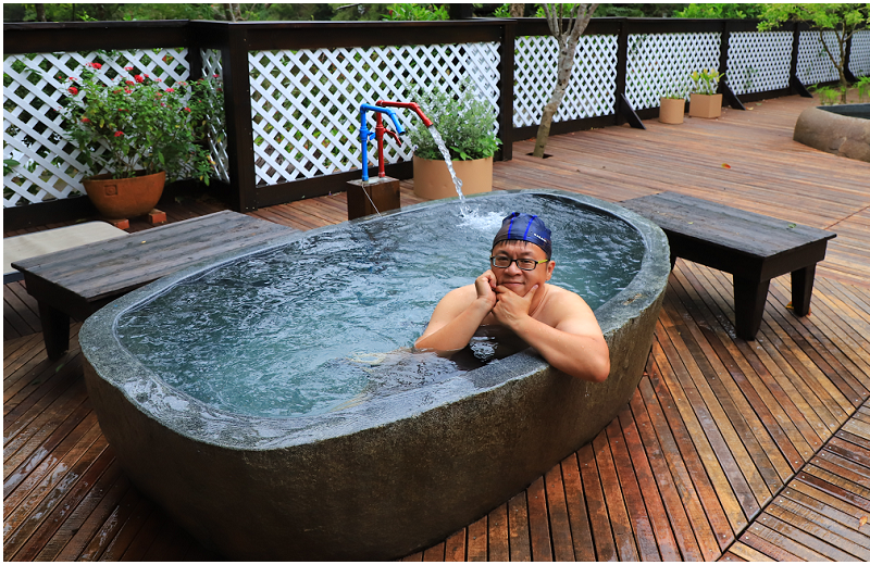 ▲石頭挖出的泡湯池真的超棒,大湖溫泉泉質為碳酸氫鈉泉,屬於泡起來會滑滑的美人湯。