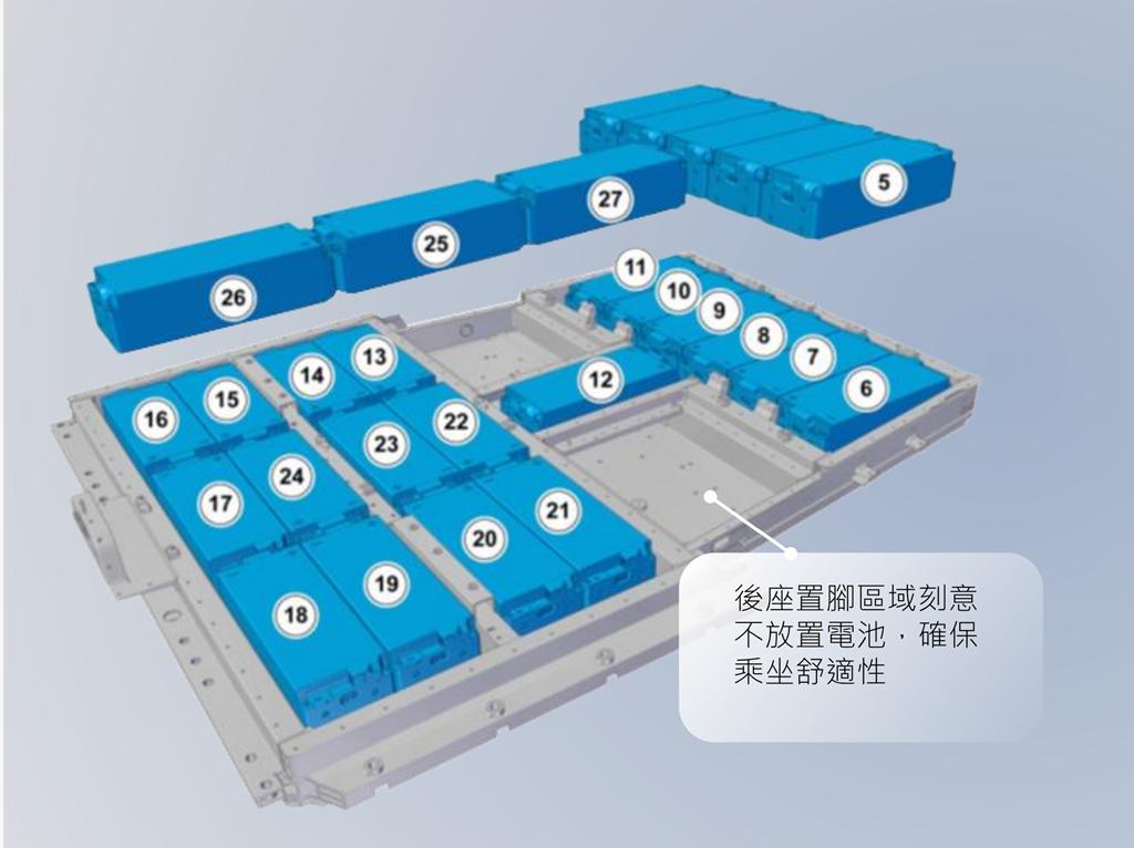 但在沒有舖滿空間,另外還特地為後座乘客留有更舒適的腳踏延展空間,在此處也沒有設置電池下,XC40 Recharge 依然有著 82kWh 的大電池容量,這原因就來自採用雙層電池設計,反而讓電量更充足。
