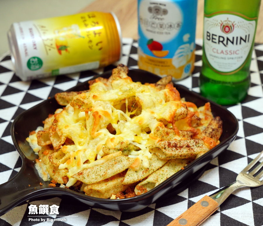 ▼唉唷喂呀,加上起司真是太邪惡啦~~魚脆條瞬間變成下酒菜,邊追劇、邊喝酒,一邊來根焗烤魚脆條也很放鬆。(未滿十八歲請勿飲酒)