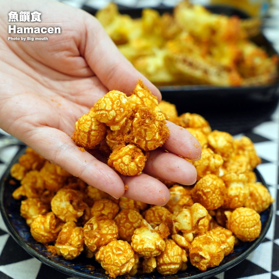 ▼採用頂級進口非基改玉米粒做成爆鬆球體,沒有人工添加物及農藥殘留,以最受歡迎的美式焦糖口味搭配自家捕獲頂級黃鰭鮪魚製成的魚鬆,吃起來鹹甜交錯、鬆脆爽口又不沾手,每一口都是幸福的夢幻滋味。