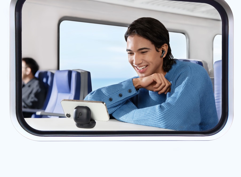 soundcore P40i 追劇機降噪藍牙耳機,特別針對喜愛追劇的年輕族群設計,推出月光白、音幻紫及深夜黑三種顏色選擇。P40i 最大特色在於其二合一充電盒設計,既能作為耳機充電盒,也能變身為手機支架,方便使用者在不使用雙手的情況下觀看影片。耳機搭載智慧適應降噪系統,能根據環境噪音自動調整降噪程度,最大可減少 45 dB 噪音,並可透過 APP 自行調整降噪等級。11 毫米的驅動單元提供卓越的 3D 立體音效,使使用者在追劇時獲得如臨現場的聽覺享受。