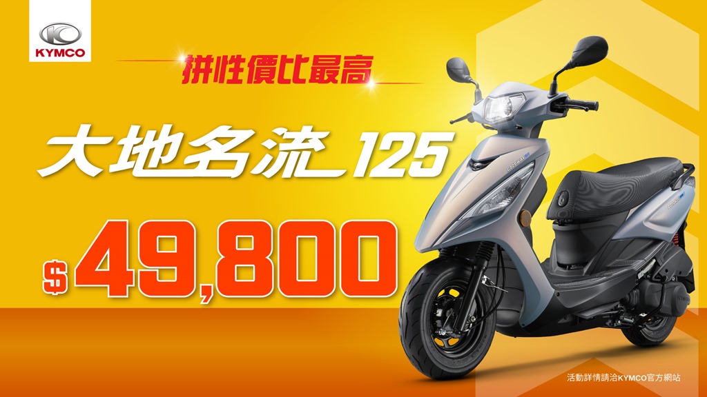 另一款受歡迎的車型大地名流125,同樣在此次活動中以49800元的優惠價格延續上市,建議售價71800元。大地名流125以其耐用性與強勁動力著稱,搭載了最新的GREEN POWER節能引擎,具備9.6 PS馬力與54.5 km/L的超低油耗。這些特性使其在城市穿梭或雙載爬坡時表現出色,兼顧環保與速度需求。
